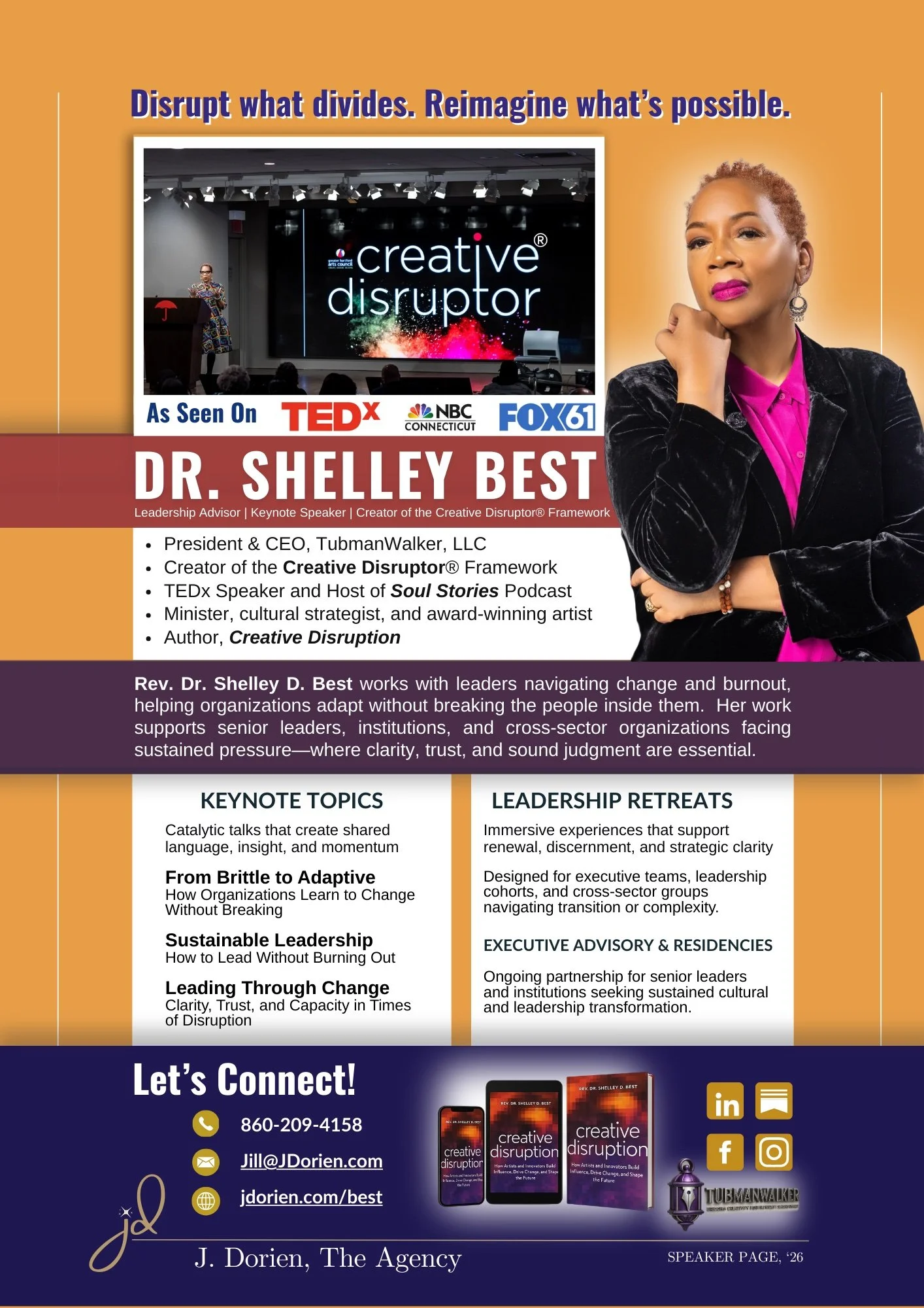 Dr. Best’s new book, Creative Disruption, is a bold blueprint for using art, voice, and vision to drive sustainable social change. It’s a must-read for creatives, advocates, and civic leaders ready to lead with heart and power.