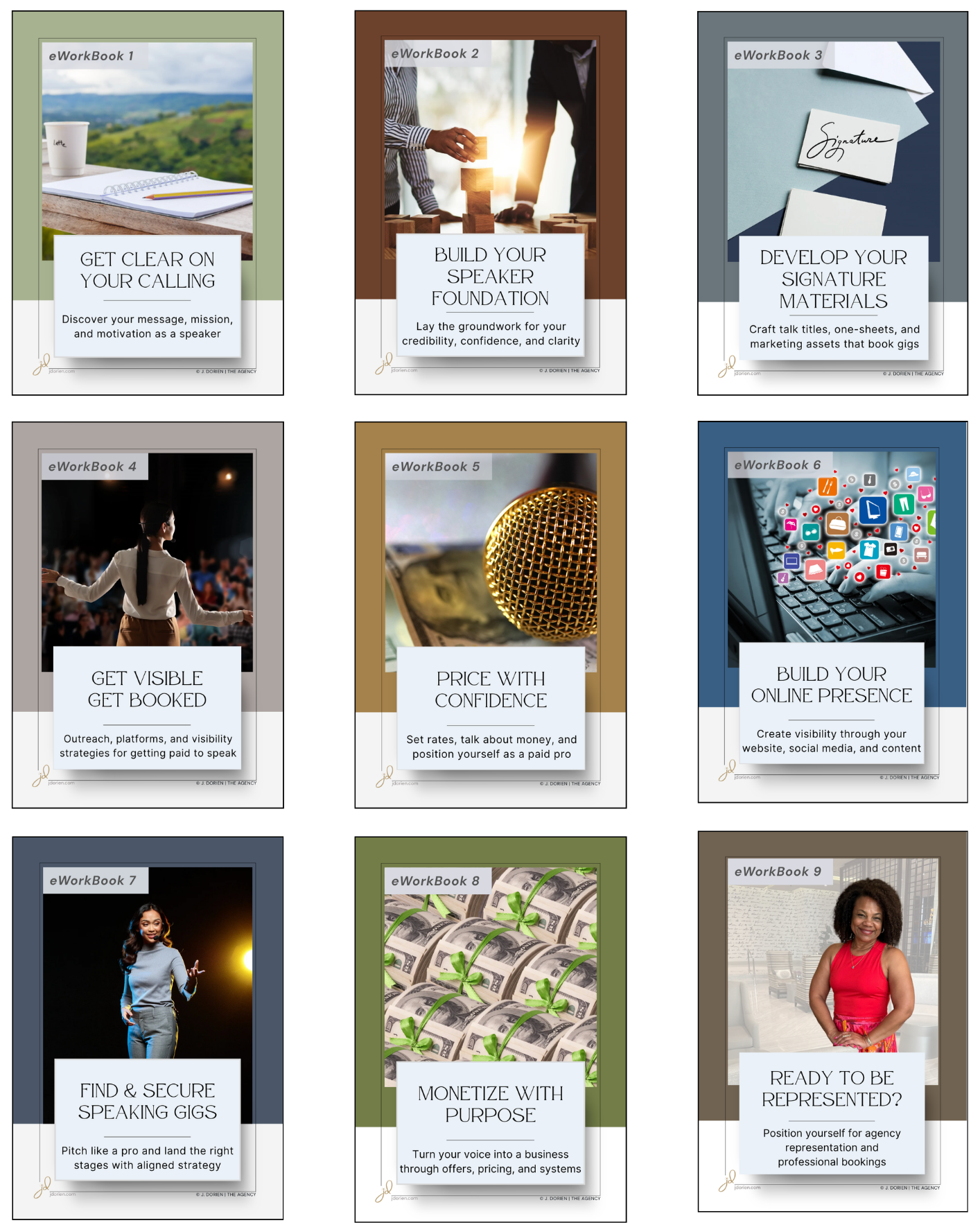 Together, these resources help speakers move from having a message to building a professional speaking platform.